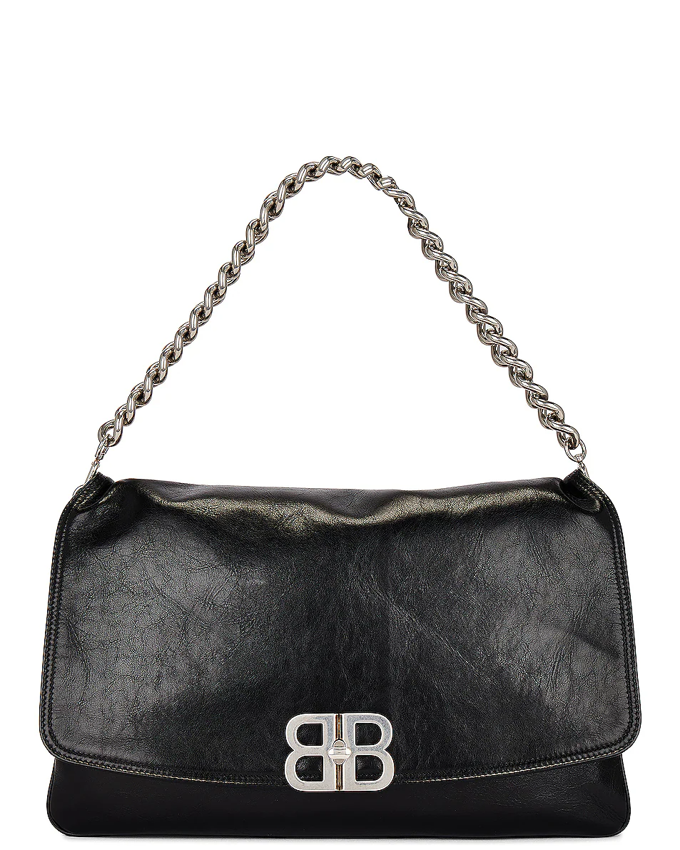 - Гладкая телячья кожа снаружи, подкладка из хлопчатобумажной ткани и состаренная серебристая фурнитура с логотипом BB